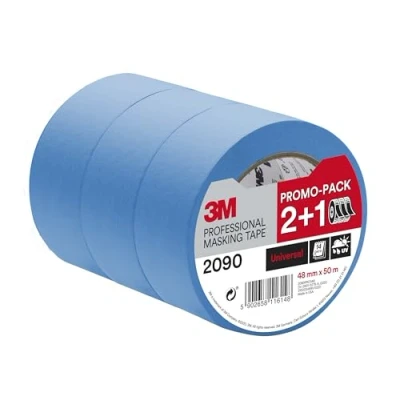 3M Professional Masking Tape 2090, Universal Surfaces, Promo Pack 2+1 Rolls (48 mm x 50 m) UV stable, Water Resistant, For Indoor & Outdoor Painting and Decorating