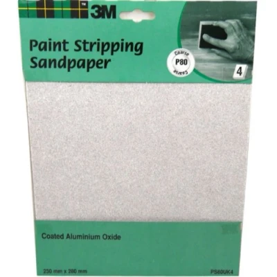 3M Sandpaper Coarse p80 Paint Stripping 4 Sheet pack coated aluminium oxide