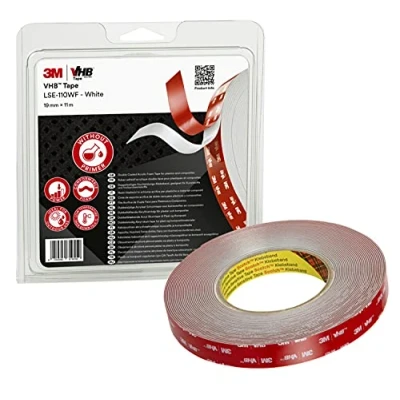 3M VHB LSE 110WF Double Sided Adhesive Tape Power Provides adhesion to plastics such as Polypropylen, TPO, TPE and composite materials without primer, 19 mm x 11 m, Thickness 1.1 mm, White (1 Roll)
