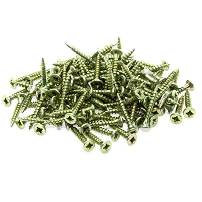 Yellow Small Steel Countersunk Wood Screws Chipboard Pack of 100 (2.5mm x 16mm)