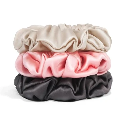 3Pack Silk Scrunchies for Hair 100% Pure Mulberry Ties, Elastic Ponytail Holders, Ties No Damage, Satin Scrunchies, Velvet Scrunchy Accessories Sleep Tie