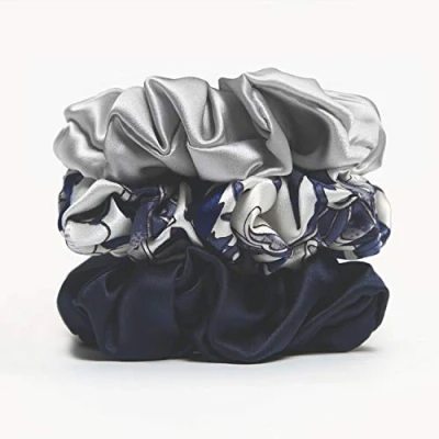 3Pack Silk Scrunchies for Hair 100% Pure Mulberry Ties, Elastic Ponytail Holders, Ties No Damage, Satin Scrunchies, Velvet Scrunchy Accessories Sleep Tie (Blue)