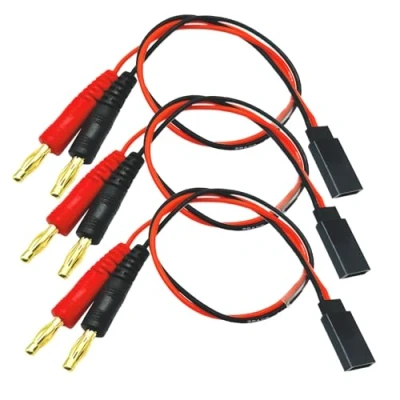 Connectors: Futaba plug and 4.0 Banana Male Wire: High Quality Super Flexible 20awg silicone cable,Wire Length: 30cm/11.8in Gold Plated4mm Banana Plugs For Maximum Conductivity Package:3pcs(same as picture)