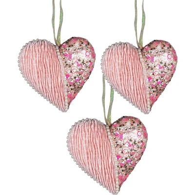 3Pcs Baby Pink Heart 12cm Christmas Tree Hanging Decorations Festive Decorative Ornaments Fairy Tale Themed Xmas Pendant