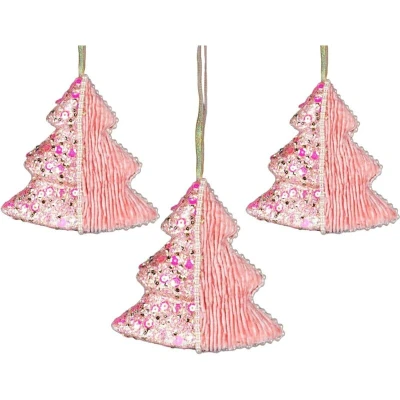 3Pcs Baby Pink Xmas Tree 12cm Christmas Hanging Decorations Festive Decorative Ornaments Fairy Tale Themed Pendant