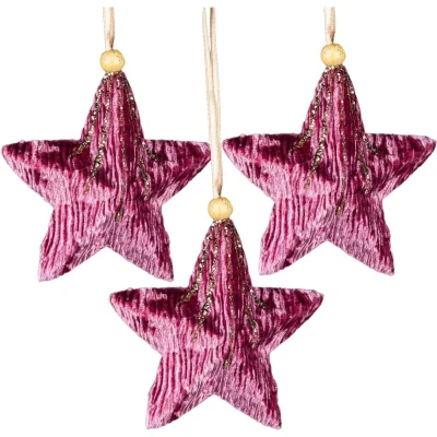 3Pcs Pink Burgundy Star 10.5cm Christmas Tree Hanging Decorations Festive Decorative Ornaments Fairy Tale Themed Xmas Pendant