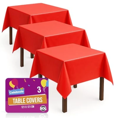 Create A Festive & Elegant Atmosphere For Your Guests - The elegant red cloth finish of our red table cover adds a touch of sophistication to any event, making it perfect for weddings, birthday parties, New Years eve decorations 2026 Great For Large Parties To Brighten Up Table - Our red table cloths will look great on any square-sized table. These red party tablecloth are made of durable material, making them easy to clean and use multiple times as plastic table cloths party . Suitable For Both Indoor And Outdoor Events - The red table cloth party disposable can cover the serving tables well outside during a buffet. No worries about the weather changes at it can still be a useful and reliable plastic table cloth red. Easy To Tidy Up And Throw Away - Our red disposable table cloth is a red plastic table cloth for parties. These red tablecloths make cleaning up easy as a basic throwaway red party decorations, table cloth wipe clean tablecloth, plastic table cover. Add A Touch Of Luxury To Your Event - Our disposable red plastic tablecloth is perfect for all kinds of celebration. The red tablecloth is quick to set up and easy to wipe clean. Once on the table, it doesn't tear easily or move around like a linen.