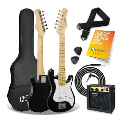 3rd Avenue 1/4 Size Kids Electric Guitar Pack for Junior Beginners 6 Months FREE Lessons, 5W Portable Amp, Cable, Bag, Picks and Strap Black White