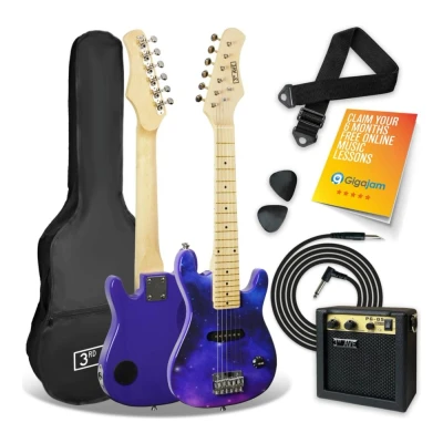 3rd Avenue 1/4 Size Kids Electric Guitar Pack for Junior Beginners 6 Months FREE Lessons, 5W Portable Amp, Cable, Bag, Picks and Strap Purple Galaxy