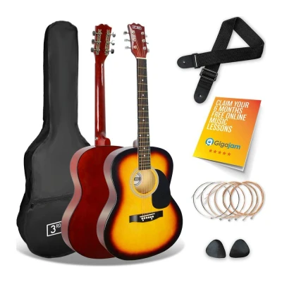 3rd Avenue Full Size 4/4 Acoustic Guitar Steel String Pack Bundle for Beginners 6 Months FREE Lessons, Bag, Picks and Spare Strings Sunburst