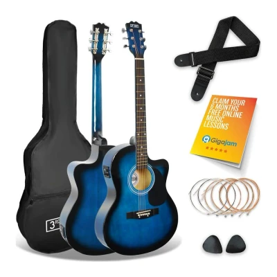 3rd Avenue Full Size 4/4 Cutaway Electro Acoustic Guitar Pack Bundle for Beginners with 6 Months FREE Lessons, Built in Tuner and EQ Blue