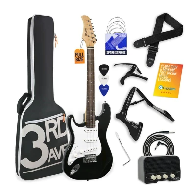 3rd Avenue Full Size 4/4 Left Handed Electric Guitar Kit in Black + 1 Month FREE Ultimate Pro & Courses 10W Amp, Cable, Stand, Gig Bag, Strap, Strings, Picks, Capo
