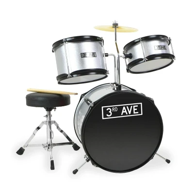 3rd Avenue Junior Kids Beginner Drum Kit, 3 Piece Set with Cymbal, Stool & Sticks in Silver FREE 6 Month Lessons