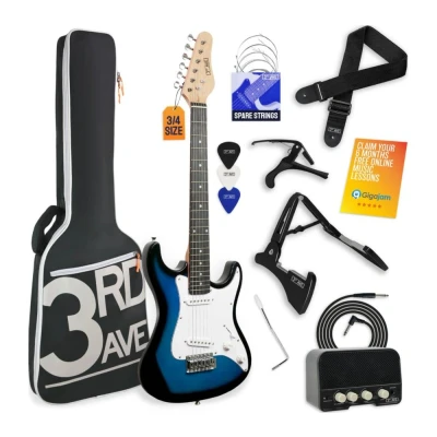 3rd Avenue XF 3/4 Size Electric Guitar Ultimate Kit with 10W Amp, Cable, Stand, Gig Bag, Strap, Spare Strings, Picks, Capo Blue