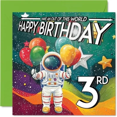 3rd Birthday Card Boy Astronaut Spacesuit Outer Space for 3 Year Old Girl, Age Boys Girls Cards Third Card, 145mm x Bday Greeting