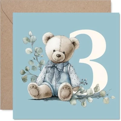 3rd Birthday Cards for Boys Number Bears Happy Card 3 Year Old Boy Nephew Son Cousin Brother, 145mm Bday Greeting