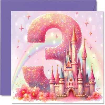 3rd Birthday Cards for Girls Fairy Princess Castle Happy Card 3 Year Old Girl Cousin Daughter Sister Goddaughter, 145mm Bday Greeting