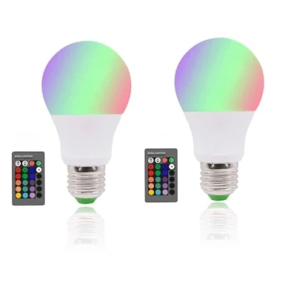 RGB Colour Changing Light Bulb. 6 Dimmable brightness levels, 15 default colours and a cool white light to choose from. You can choose your favourite colour according to your mood. Memory function. The bulb will remember the colour and brightness when you turn off. You don't have to adjust to your desired setting every time you turn on. Complete Control. Turn LED Light bulbs on or off with the included remote control. Easy to operate. Relax and enjoy your life. Energy Saving. This 3W LED bulb is equivalent to 20-25W incandescent bulb in 100% white colour, saves up to 85% energy. You Will Get. E27 colour changing bulb and remote controller.