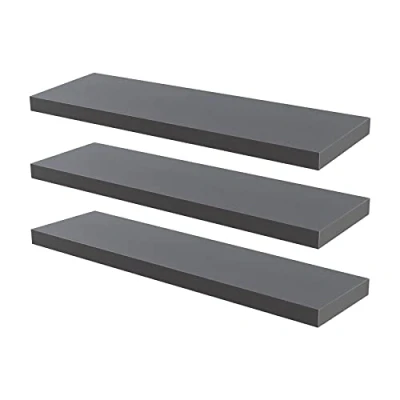 3x Grey 80cm Modern Floating Wall Shelves By Harbour Housewares
