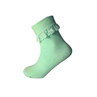3X Pairs Kids Girls Cotton Frilly Lace Top Fancy Party Ankle Socks in Red Purple Black Grey (Mint, 7 10 Years)