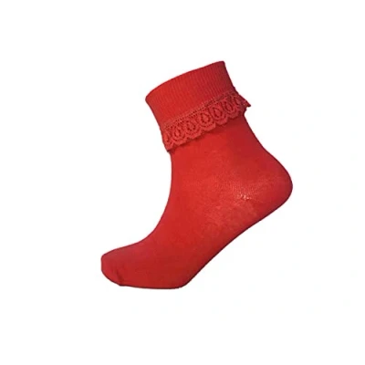 3X Pairs Kids Girls Cotton Frilly Lace Top Fancy Party Ankle Socks in Red Purple Black Grey (Red, 7 10 Years)