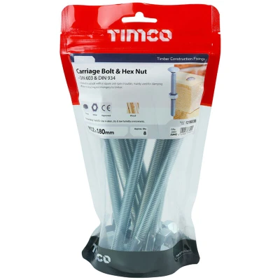 3x TIMCO Carriage Bolts & Hex Nuts Zinc 12180CBB Pack of 8