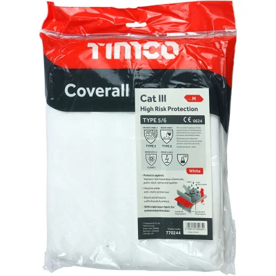 3x TIMCO Cat III Type 5/6 Coverall High Risk Protection White 770244