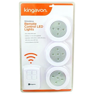 3x White 5 LED Remote Plastic Puck Lights By Kingavon