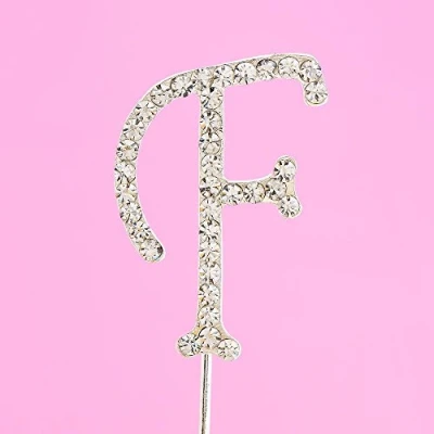 Diamante Alphabet Cake Topper Letter F Size 4.5cm Tall 11cm Stem Length Beautiful and elegant script style font, perfect for monogram initials or spelling full names Add a personalised sparkling finish to wedding, birthday or anniversary cakes