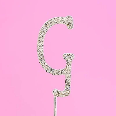 Diamante Alphabet Cake Topper Letter G Size 4.5cm Tall 11cm Stem Length Beautiful and elegant script style font, perfect for monogram initials or spelling full names Add a personalised sparkling finish to wedding, birthday or anniversary cakes