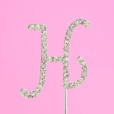 Diamante Alphabet Cake Topper Letter H Size 4.5cm Tall 11cm Stem Length Beautiful and elegant script style font, perfect for monogram initials or spelling full names Add a personalised sparkling finish to wedding, birthday or anniversary cakes