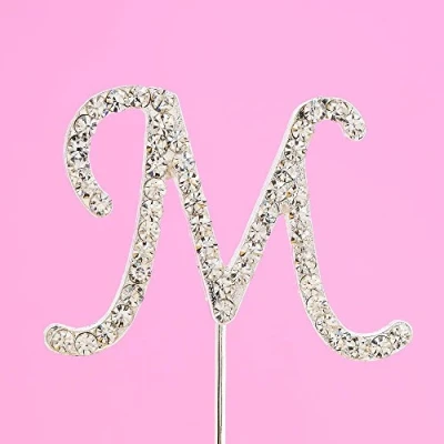 Diamante Alphabet Cake Topper Letter M Size 4.5cm Tall 11cm Stem Length Beautiful and elegant script style font, perfect for monogram initials or spelling full names Add a personalised sparkling finish to wedding, birthday or anniversary cakes