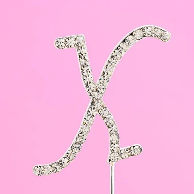 Diamante Alphabet Cake Topper Letter X Size 4.5cm Tall 11cm Stem Length Beautiful and elegant script style font, perfect for monogram initials or spelling full names Add a personalised sparkling finish to wedding, birthday or anniversary cakes