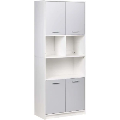Minimalistic Shelving Unit with Closed Cabinets. Organise your space with this sleek white particle board bookcase with grey fronts. Its versatile design provides generous open shelving for books, décor and storage boxes, while the two closed cupboards offer discreet storage for items you prefer to keep out of sight. Durable yet stylish, this bookcase is the ideal way to keep your essentials neatly organised, beautifully displayed and within easy reach. Details: Product Type: Bookshelf General Color: Grey, White Material Type: Engineered Wood Main Material: Particle Board Legs material: Engineered Wood Shelves number: 7 Finish: Melamine Dimensions: Depth: 40 cm Width: 80 cm Height: 197 cm Weight: 54 kg Shelf Weight Capacity: 15 kg Top Weight Capacity: 15 kg Offer Includes: 1 x Bookcase Key Features: Minimalistic, Scandinavian Style, Blends Well with Any Decor, Robust Frame, Modern Look and Quality for Many Years, Plenty of Storage Space Assembly Information: Full Assembly Required.