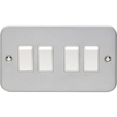 4 Gang Quad Light Switch 2 Way 10A HEAVY DUTY METAL CLAD White Trim & Rocker Decorative Kitchen Living Room Bedroom Plate