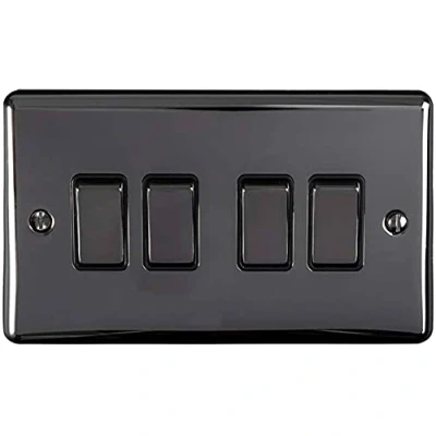 4 Gang Quad Light Switch Black NICKEL & Trim 2 Way 10 Amp Dark Gunmetal Decorative Wall Plate Solid Metal Rocker On/Off Mains Lighting