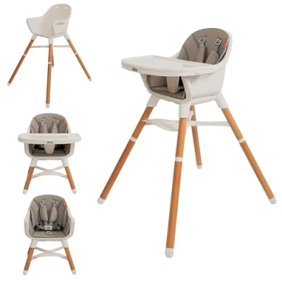 4 in 1 Nuby High Chair with Removable Tray 6 Months to 3 Years Evolutionary Meal Supports up 60 lbs Beige