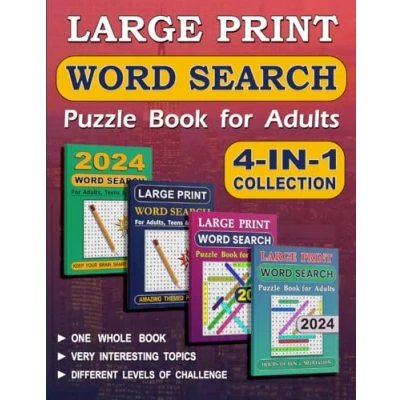 4 IN 1 Word Search Puzzle Book for Adults: Books Adults Large Print. Brain Game & Activity Adults, Teens Seniors.