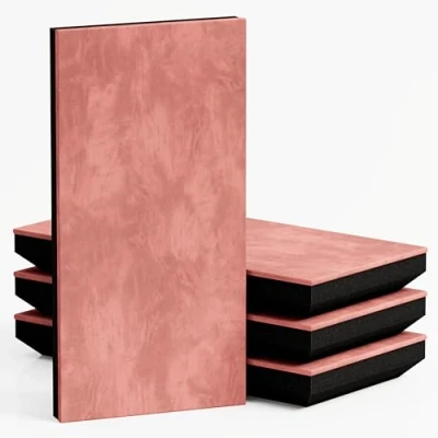 4 Pack — Narrow Acoustic Fabric Velvet Panel "CINEMATIC mini" Decorative Soundproofing Art Color: (Rose, N 25x50x3cm)