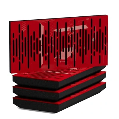 4 Pack — Narrow Sound Absorption Diffuse Acoustic Horizont Panel 50x25cm Diffusion Reflection Soundproofing Model Thickness Color: (WAVE H 53mm Red gloss plastic]
