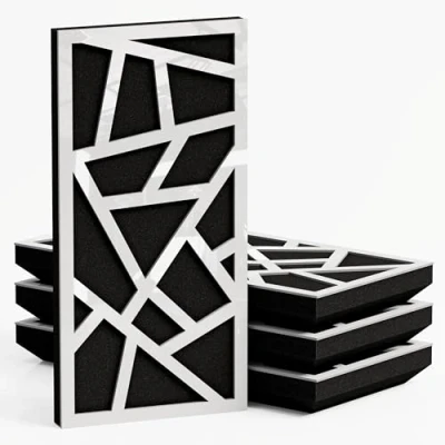 APPLICATIONS: These acoustic panels, constructed from high-density fiberboard and sound-absorbing materials, perform exceptionally well in the mid-to-high frequency range. They are frequently used in recording studios, home entertainment centers, music studios, corporate offices, training rooms, concert venues, conference rooms, cafeterias, hotels, residences, religious institutions, recreational facilities and broadcast studios. ACOUSTIC SOLUTION: Improve the acoustics of your room with our high-quality acoustic panels. These panels provide superior sound control by effectively absorbing sound and reducing echo in any environment, compared to conventional foam panels. Our acoustic panels will produce significantly better results, and we have a wide selection of exclusive designs and colors to choose from to suit your interior. SPECIFICATIONS: Combination of absorption and diffusion | Absorption is aimed at medium frequencies | Overall noise reduction coefficient (NRC): 0.54 | Dissipation range: 200 Hz to 5000 Hz | Material composition: Laminated high density fibreboard (HDF) and acoustic foam | Dimensions: 500x248 mm / (19.7x9.8 inches) |Thickness: 33mm (1.3 inches) | Sold in sets of 4 panels. MOUNTING OPTIONS: Fixing with double-sided adhesive tape (included) in the vertical plane. To install the panels on the ceiling, it is recommended to use construction adhesive (so-called liquid nails). CUSTOMER SUPPORT: Our team is committed to providing a positive experience with every order. If you encounter any issues with your product, you can reach out through your Amazon account — we're always ready to assist.