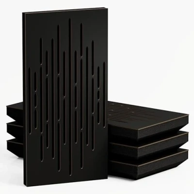 APPLICATIONS: These acoustic panels, constructed from high-density fiberboard and sound-absorbing materials, perform exceptionally well in the mid-to-high frequency range. They are frequently used in recording studios, home entertainment centers, music studios, corporate offices, training rooms, concert venues, conference rooms, cafeterias, hotels, residences, religious institutions, recreational facilities and broadcast studios. ACOUSTIC SOLUTION: Improve the acoustics of your room with our high-quality acoustic panels. These panels provide superior sound control by effectively absorbing sound and reducing echo in any environment, compared to conventional foam panels. Our acoustic panels will produce significantly better results, and we have a wide selection of exclusive designs and colors to choose from to suit your interior. SPECIFICATIONS: Combination of absorption and diffusion | Absorption is aimed at medium frequencies | Overall noise reduction coefficient (NRC): 0.54 | Dissipation range: 200 Hz to 5000 Hz | Material composition: Laminated high density fibreboard (HDF) and acoustic foam | Dimensions: 500x248 mm / (19.7x9.8 inches) |Thickness: 33mm (1.3 inches) | Sold in sets of 4 panels. MOUNTING OPTIONS: Fixing with double-sided adhesive tape (included) in the vertical plane. To install the panels on the ceiling, it is recommended to use construction adhesive (so-called liquid nails). CUSTOMER SUPPORT: Our team is committed to providing a positive experience with every order. If you encounter any issues with your product, you can reach out through your Amazon account — we're always ready to assist.