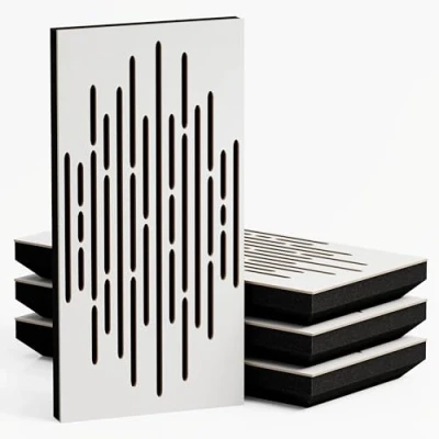 APPLICATIONS: These acoustic panels, constructed from high-density fiberboard and sound-absorbing materials, perform exceptionally well in the mid-to-high frequency range. They are frequently used in recording studios, home entertainment centers, music studios, corporate offices, training rooms, concert venues, conference rooms, cafeterias, hotels, residences, religious institutions, recreational facilities and broadcast studios. ACOUSTIC SOLUTION: Improve the acoustics of your room with our high-quality acoustic panels. These panels provide superior sound control by effectively absorbing sound and reducing echo in any environment, compared to conventional foam panels. Our acoustic panels will produce significantly better results, and we have a wide selection of exclusive designs and colors to choose from to suit your interior. SPECIFICATIONS: Combination of absorption and diffusion | Absorption is aimed at medium frequencies | Overall noise reduction coefficient (NRC): 0.54 | Dissipation range: 200 Hz to 5000 Hz | Material composition: Laminated high density fibreboard (HDF) and acoustic foam | Dimensions: 500x248 mm / (19.7x9.8 inches) |Thickness: 33mm (1.3 inches) | Sold in sets of 4 panels. MOUNTING OPTIONS: Fixing with double-sided adhesive tape (included) in the vertical plane. To install the panels on the ceiling, it is recommended to use construction adhesive (so-called liquid nails). CUSTOMER SUPPORT: Our team is committed to providing a positive experience with every order. If you encounter any issues with your product, you can reach out through your Amazon account — we're always ready to assist.