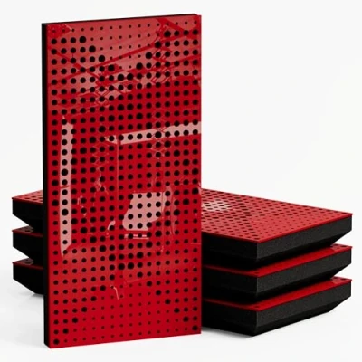 4 Pack — Narrow Sound Absorption Diffuse Acoustic Panel 50x25cm Diffusion Reflection Soundproofing Insulation Model Thickness Color: (WILDS 53mm Red gloss plastic]