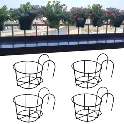 Material: This iron art flower pot holder has an anti-rust coating, which is not easy to rust, these are durable for long-term use. Suitable for: The hanging railing planter flower pot holder is Suitable for balcony, patio, porch, garden, rail, fence and more. Multipurpose: This flower pot stand is perfect for air plants, succulents and other micro landscape, or wedding decor. Decoration: Elegant and artistic round shape, they are easy to hang on balcony fence,our flower pot holder is a masterpiece of art for home and garden decor organizer as a decorative flower holder. Easy to assemble: They are easy to assemble, not need any hardware or tools, just hang it on deck, fence or porch railings.