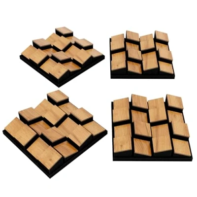 4 Pack — Sound Diffuser Acoustic Panels Seamless Appearance 3D Mosaic Wall Pazzle DIY Decor Art Wooden (HDF) Decorative Color: [ZARINITY Oak]