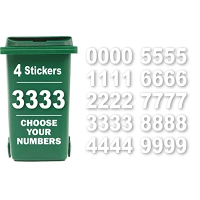 CLEARLY IDENTIFY YOUR BINS – You’ll receive a set of 4 bin numbers for wheelie bins, ensuring your bin or dustbin doesn’t get mixed up with your neighbour’s. EASY TO APPLY – No need for complicated instructions! These self-adhesive number stickers are designed to be stick on numbers for wheelie bins—just peel and apply. HIGHLY VISIBLE – At 17.5cm (7") tall, our bin stickers for wheelie bins ensure your bin labels stand out, preventing mix-ups on collection day. DURABLE & WEATHERPROOF – Made from high-quality adhesive numbers for wheelie bins, these wheelie bin stickers are built to withstand rain, wind, and sun for years. ORDER MULTIPLE NUMBERS – Want more than one number? Select the first number, add to basket, then repeat for the next. Your bin number stickers for wheelie bins will be made to order.