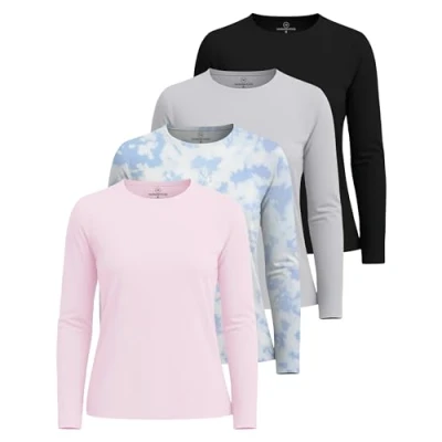 4 Pack: Womens Quick Dry Fit Tech Stretch Long Sleeve Athletic Workout Ladies T Shirt Tee Top Running Compression UPF Sun Rash Guard Gym Set 2, M