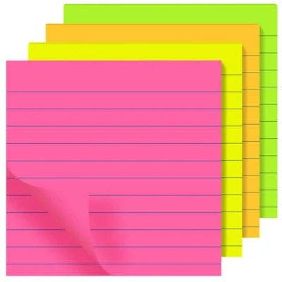 LINED FOR STRUCTURED: Each note includes crisp ruled lines for clear writing. Perfect for jotting down tasks, to-do lists, meeting notes, or study reminders. BRIGHT NEON COLOURS TO GRAB ATTENTION: Features bold neon shades of yellow, pink, green, and orange, ideal for colour-coding, quick reference, and high visibility. PRACTICAL SQUARE FORMAT FOR DAILY USE: Sized at 76 x 76 mm (3" x 3"), these sticky notes are easy to place on files, desks, planners, or whiteboards. STRONG SELF-STICK ADHESIVE THAT REMOVES CLEANLY: Stays firmly in place on paper, plastic, glass, or walls, yet peels away without leaving residue or damage. IDEAL FOR OFFICE, CLASSROOM, OR HOME PLANNING: Designed for professionals, students, and anyone who needs fast, visible organisation for work, study, or household management. Especially helpful for getting organised for back to school or preparing to go back to work, these notes make planning simple and efficient.