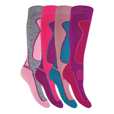 4 Pairs Mens Ladies Kids Extra Warm Long Knee High Colourful Winter Wool Blend Ski Socks (4 7 uk, SL305 Ladies)